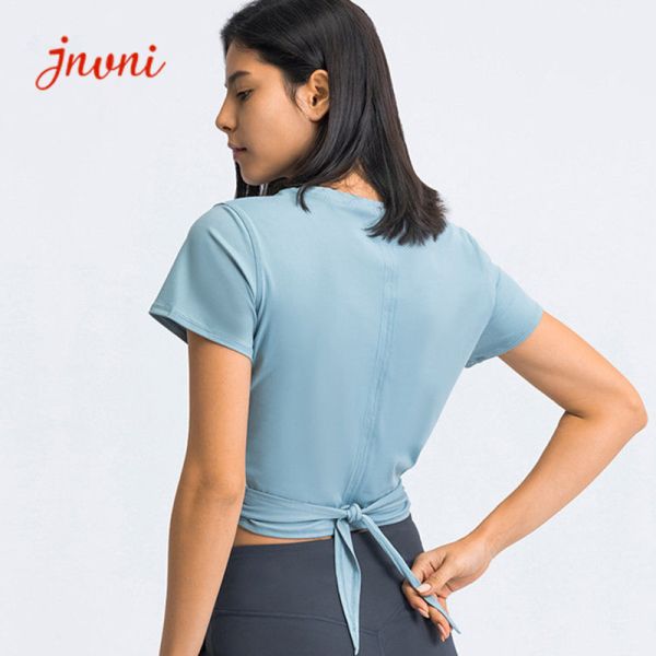 Skin Friendly Cross Hem Lace Up Back Yoga Loose Fit Breathable Short Sleeve T-shirt For Women